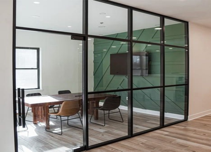 Sleek and functional glass partitions for creating open, modern spaces with privacy and sound control.