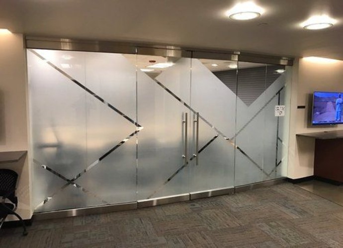 Custom etched and sandblasted glass designs for adding intricate patterns, logos, or privacy with elegance and style.